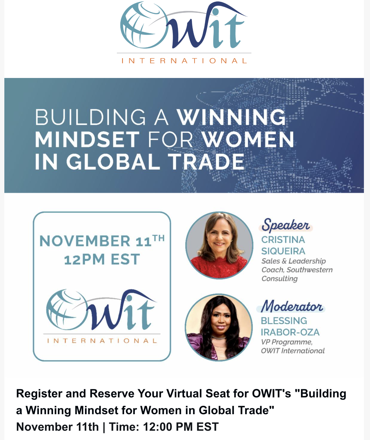 Reserve your seat now! Click the registration link below to secure your spot for OWIT’s Building a Winning Mindset for Women in Global Trade.